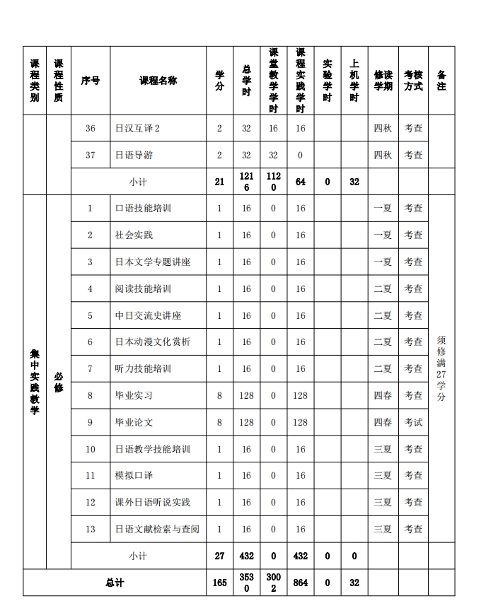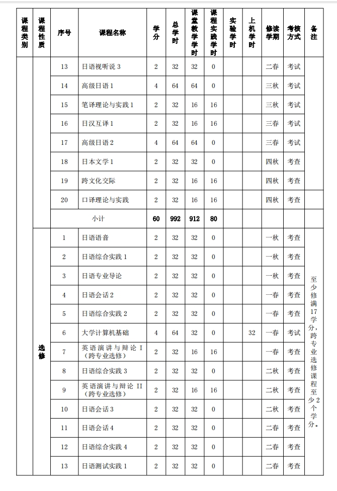 日语专业课程设置