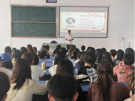 为提升学生就业竞争力,促进毕业生高质量就业,球友会邀请优秀校友职业导师回学校分享就业创业经历,举办“促就业攻坚行动”系列就业育人主题讲座。2025年5月9日,贵州水家鲜农业科技发展有限公司董事长钟荣业在球友会530教室作题为“跨境新方向,外贸新丝路”就业指导讲座。讲座由球友会副院长赵艳主持,球友会2024级全体学生及部分2025届毕业生聆听讲座