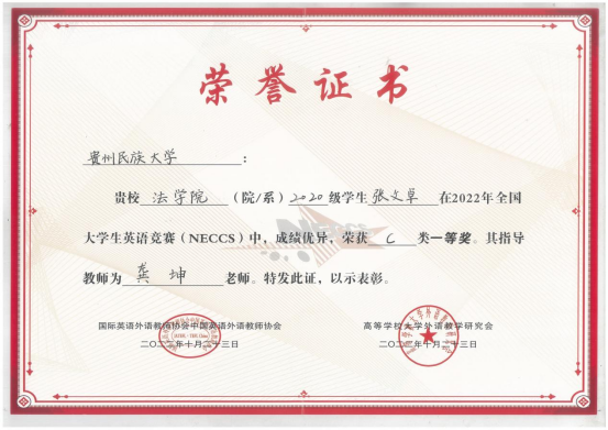 我校师生在“2022年全国大学生英语竞赛(NECCS)”中喜获佳绩