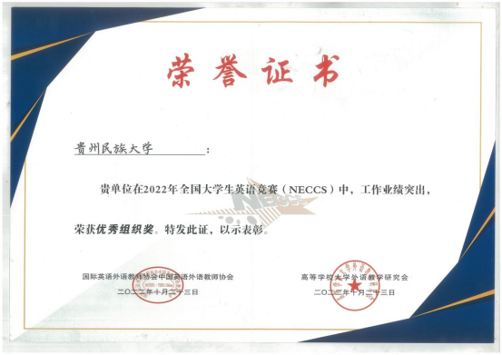 “2022年全国大学生英语竞赛(NECCS)”是全国性大学生英语综合能力竞赛活动,由高等学校大学外语教学研究会和国际英语外语教师协会举办,其影响力较大,在社会和全国高校中获得了广泛认可。