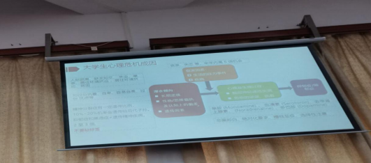 最后一位给我们授课的是贵州大学心理中心专职心理咨询师杨满云副教授。杨副教授分别从大学生心理危机现状,大学生心理危机识别,大学生心理危机应对三大方面详细清楚的解释了心理的内涵,病与非病的三原则,如何应对精神分裂症大学生的心理危机并提出四点应对建议:1.发现异常及时止损;2.及时约谈,以生为本;3.上报领导,请求支援;4.联系家长,形成合力。接着,老师介绍了抑郁症的形成;大学生心理危机成因;重点人群;心理疾病高发期以及危险信号。
