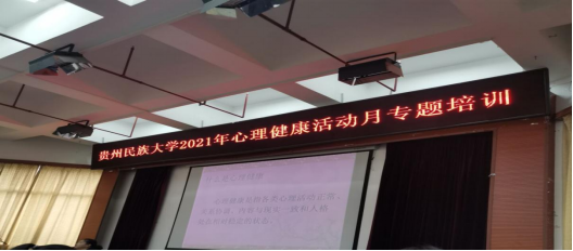 为了全面贯彻党的教育方针,推进素质教育,加强和改进学生心理健康,提高学生心理调节能力,培养良好心理品质,促进学生思想道德素质和心理健康成长,更有利于学生的科学文化素质和身心健康素质的协调发展。贵州民族大学2021年5·25大学生心理健康活动月举办了心理健康专题培训会。球友会辅导员翟利沙和28名学生参加此次培训。