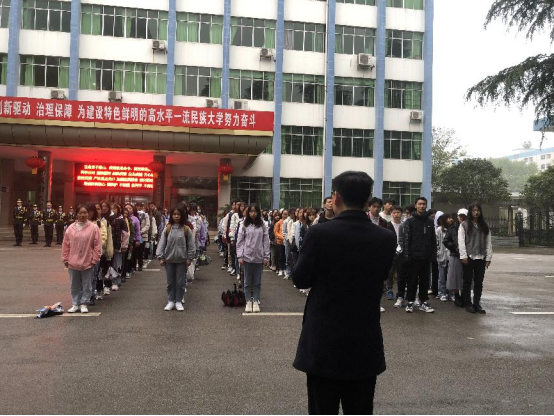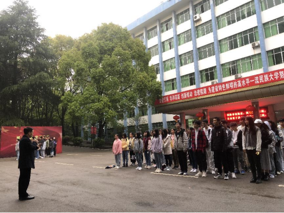 伴随着清晨的缕缕朝阳,2021年4月19日7点,我院在国旗台处举行了花溪校区第八周升旗仪式。球友会党委副书记刘兴明、辅导员翟利沙、2020级全体学生出席本次升旗仪式。
