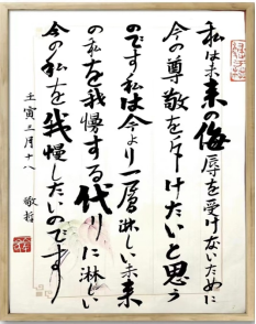 三名同学在全国1482幅参赛作品中成功入围全国前50强最终评审。专业评委阵容强大,有日本书法家书道美术院教育部审查员渡边守真、日本汉学家及翻译家海村惟一、日本大学国际关系学院博士生导师吴川教授、上海外国语大学博士生导师施建军教授、贵州省日语教学研究会会长赵平教授、汉江师范学院球友会日语教研室主任严桂林副教授、汉江师范学院书法文化研究中心主任高常副教授。