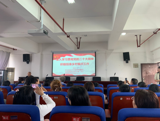 张武同志以自身为例,给全体师生党员讲述了在工作中和生活中应该如何发挥党员的先锋模范带头作用。最后,他呼吁我院全体党员应提高思想站位,时刻关注乡村振兴发展,并积极参与到乡村振兴工作中,为民族的复兴贡献出自己的力量。