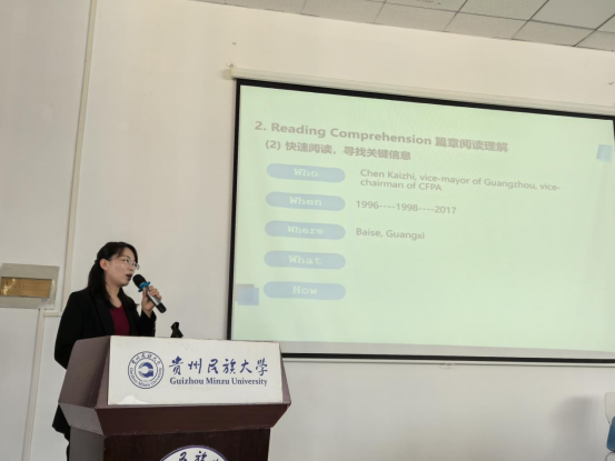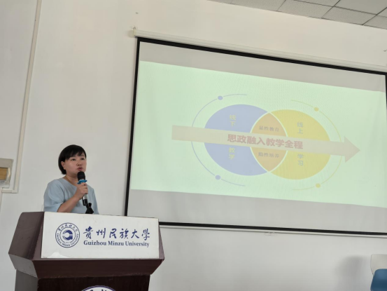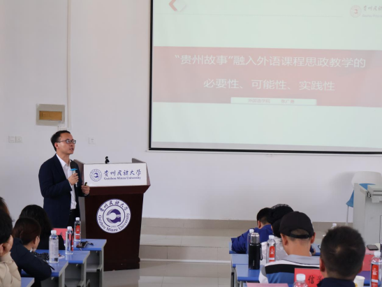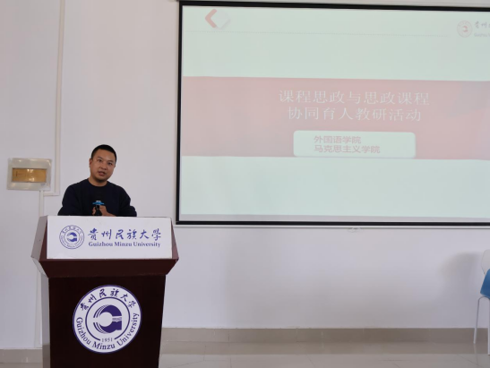 教研活动上,球友会院长张广勇教授领学《高等教育课程思政建设指导纲要》;教务处处长张乾教授解读了学校课程思政教学要求;球友会朱颖、杜晖、王育虹、杨筱松老师分别围绕《综合英语》《大学英语》《高级日语》《少数民族文化英译》等介绍课程思政教学开展情况;张广勇院长以“贵州故事”融入外语课程思政教学的必要性、可能性和实践性为题,总结球友会课程思政教学的成果,同时也提出了总体思路和展望。