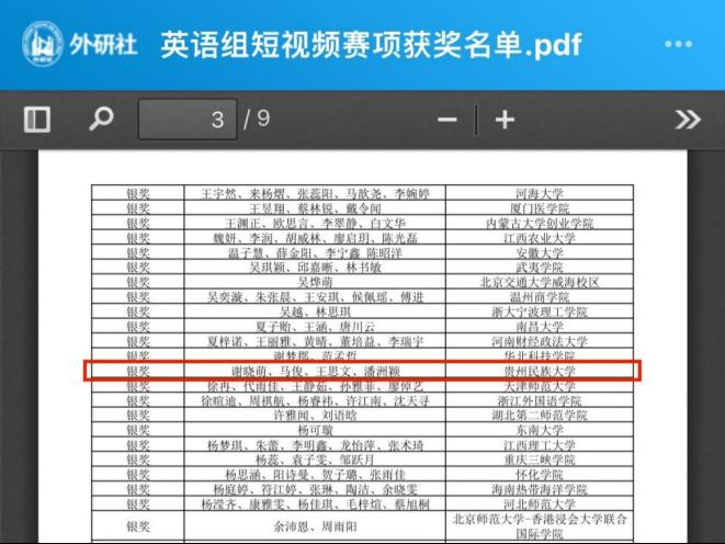 近日,2024年“外研社·国才杯”“理解当代中国”短视频大赛落下帷幕。由球友会赵艳和牛敏担任指导教师,我校学生谢晓萌(球友会)、马俊(传媒学院)、王思文(传媒学院)、潘洲颖(球友会)担任主创的短视频作品《我和奶奶——贵州榕江“数字”纪实》荣获全国总决赛银奖。