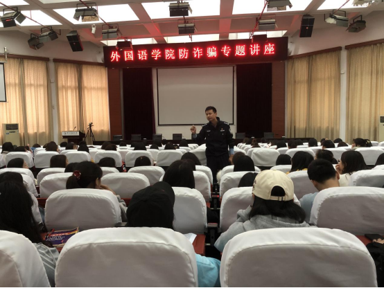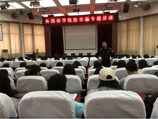 赵警官结合近期发生的真实案例和我校学生受骗的典型案例,列举了短信诈骗、电话诈骗、网络诈骗等诈骗类型,讲述了刷单诈骗、冒充客服及公检法诈骗、贷款诈骗等多种诈骗形式,形象生动地阐述了诈骗形成的根由及其对自身、社会造成的巨大危害和恶劣的影响,要求广大学生提高防范意识,告知同学们如遇电信或者网络诈骗要采取不理会或者举报的方式,切莫因贪小便宜的心理而遭受损失。并希望听讲座的师生将讲座内容传达给自己所在班级、周围同学及家人朋友,做好宣传工作,提高防范意识和能力