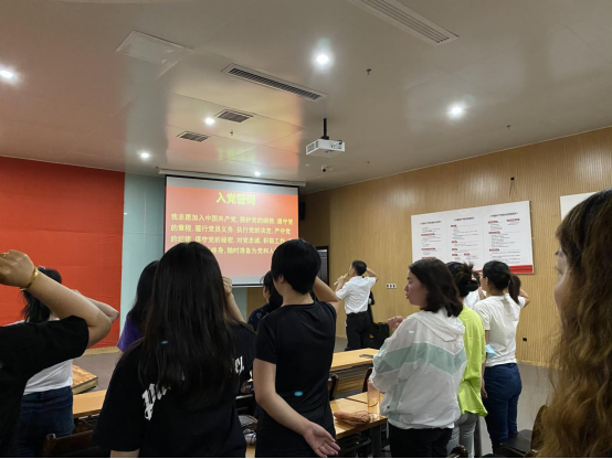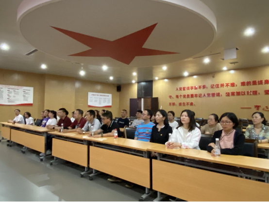 刘兴明副书记领誓,全体党员在庄严的中国共产党党旗下重温入党誓词。