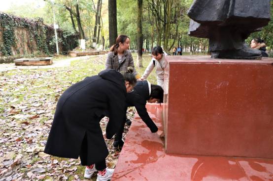 首先,活动一开始,在邓恩铭烈士雕像前,老师与学员们默哀三分钟,向革命烈士致敬。