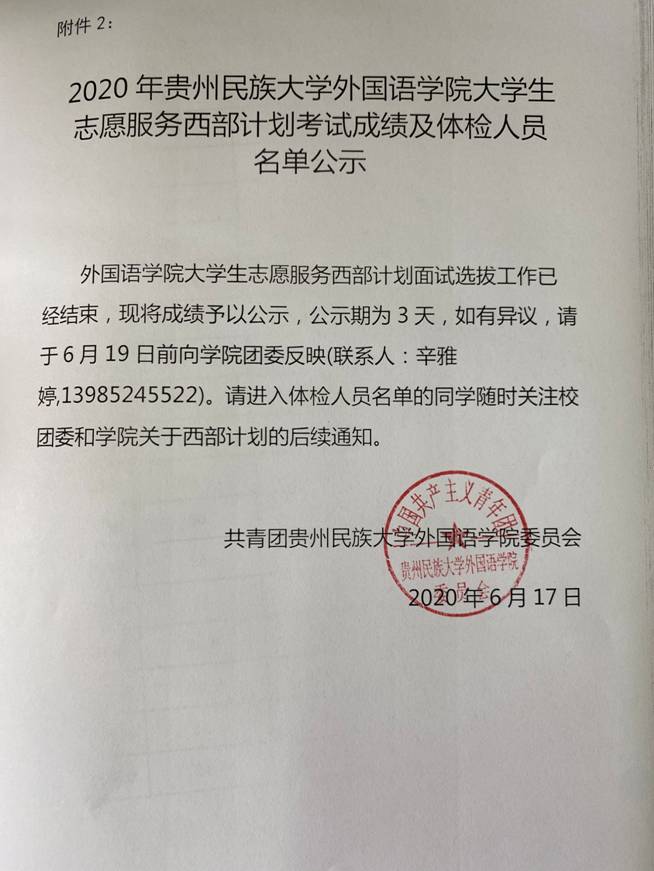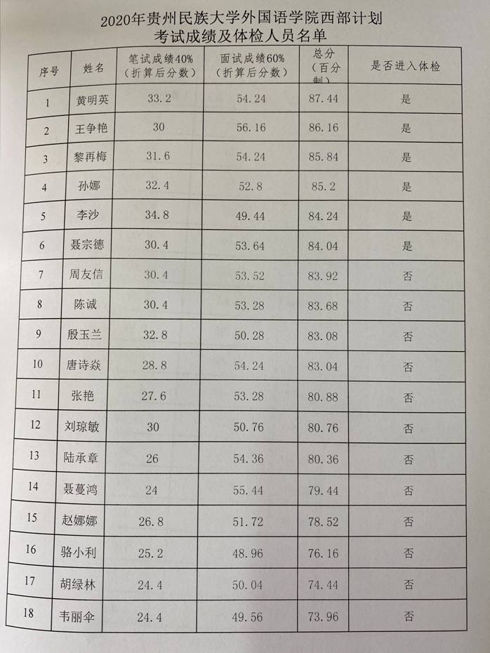2020年球友会大学生志愿服务西部计划考试成绩及体检人员名单公示